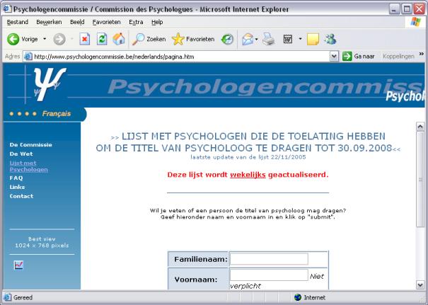 10.06.2007 vijf niet terug te vinden in de Psychologenlijst. Dit zou moeten